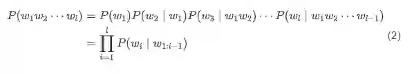 通过以上的条件概率,可以进一步计算一个句子出现的概率,即相应单词序列的联合概率 ,式中 为序列的长度。