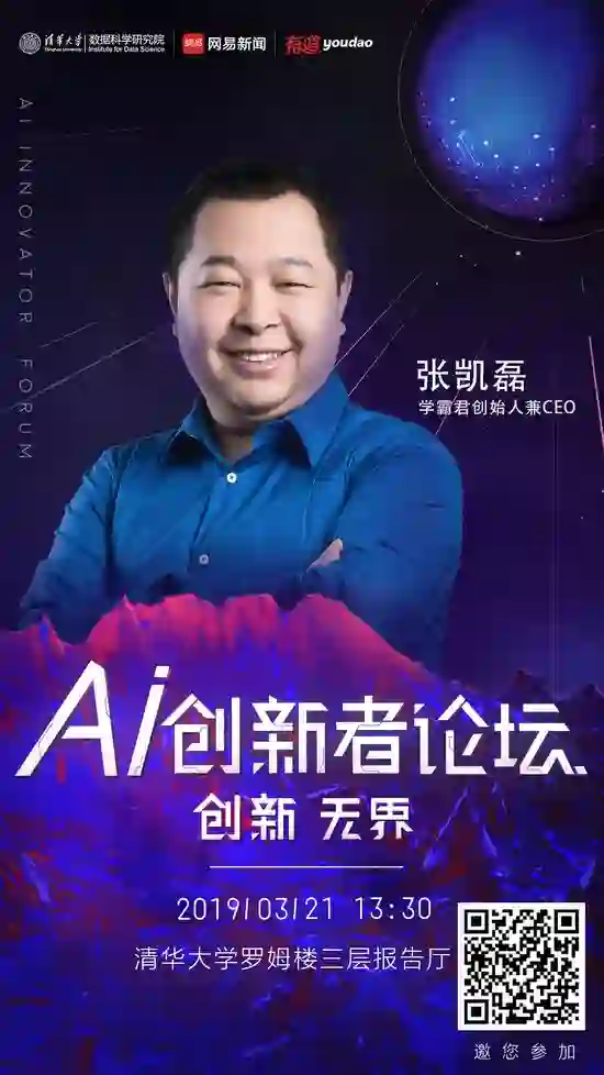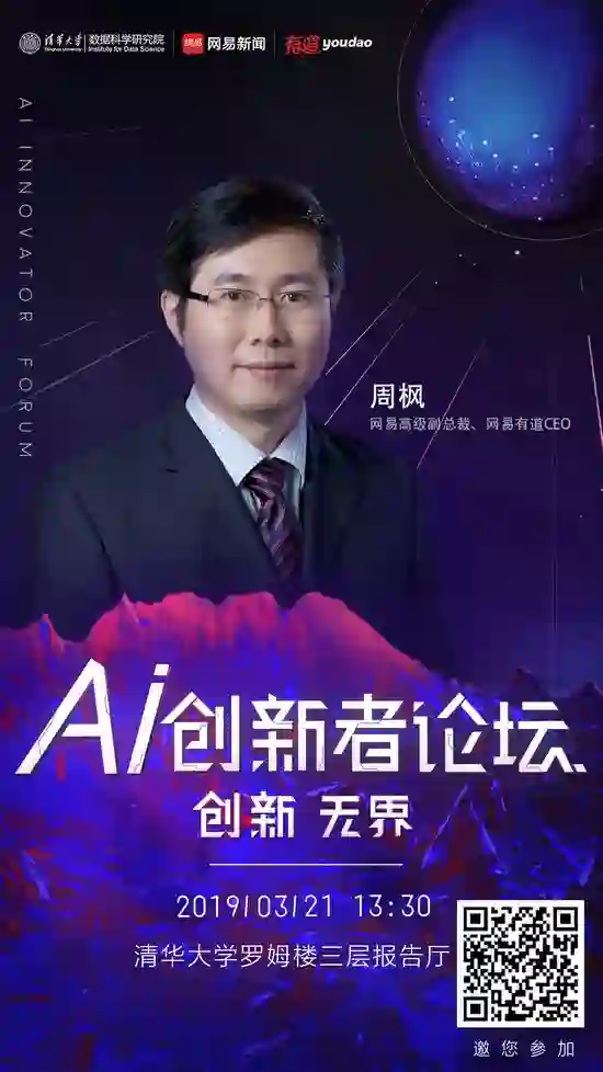由清华大学数据科学研究院、网易新闻、网易有道联合筹办的“中国AI创新者论坛”将于3月21日下午在清华大学罗姆楼三层报告厅举办。