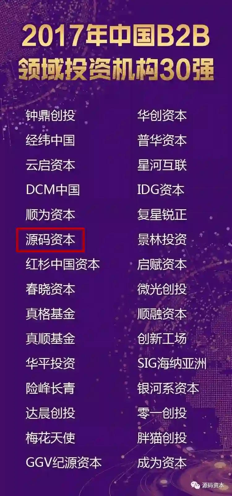 源码资本上榜“2017中国B2B领域投资机构30强”,源码资本投资企业易久批、百布、锐锢商城、一亩田、运去哪、找煤网、网化商城登榜“2017年中国B2B企业百强榜”。磁金融登榜“2017年中国B2B电商30强服务商”榜单。易久批创始人兼CEO王朝成、百布创始人兼CEO赵振洪、一亩田创始人兼CEO邓锦宏、找煤网创始人兼CEO崔耸、锐锢商城创始人兼CEO高瑒、网化商城创始人兼CEO李雷荣登“2017年中国B2B百名行业领袖”榜单。