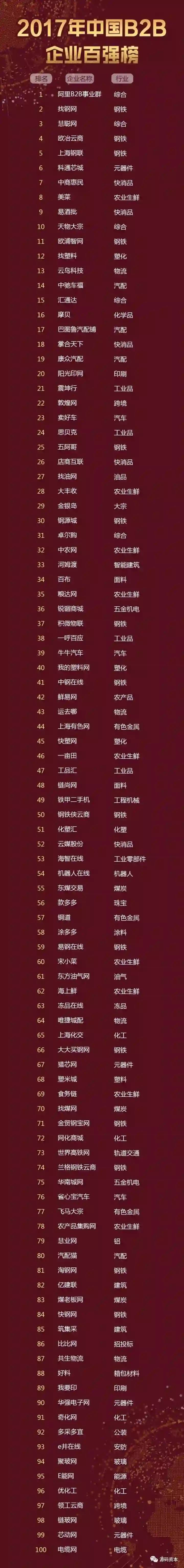 近日,由国家工业信息安全发展研究中心(原工信部电子一所)和中国电子商务协会指导,B2B内参主办的2017第二届中国B2B峰会暨首届中国B2B博览会盛大召开,现场见证“2017年中国B2B企业百强”、“2017年中国B2B创新企业50强”和“2017中国B2B领域投资机构30强”等五大重量级榜单的发布。