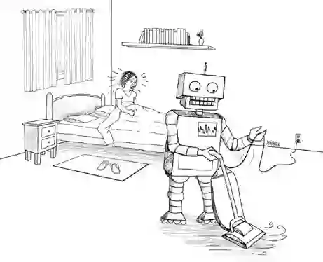 那么此时机器人就必须理解背后的因果关系:吸尘器制造噪音,噪音吵醒人,而这会使你不高兴。