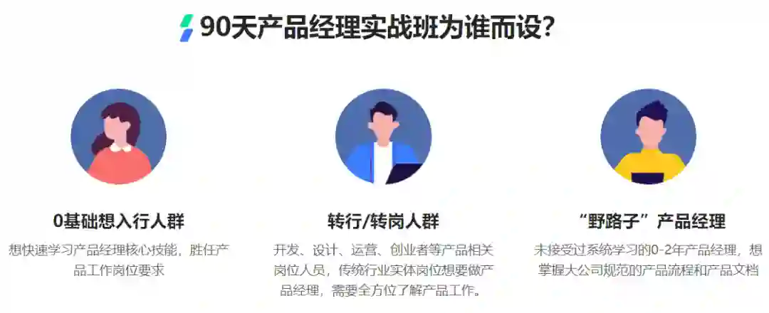 因此想更高效、系统地掌握产品体系化知识,顺利转岗/入门/进阶产品,并能够胜任此后2-3年的工作,我推荐你可以了解学习——《90天产品经理实战班》。