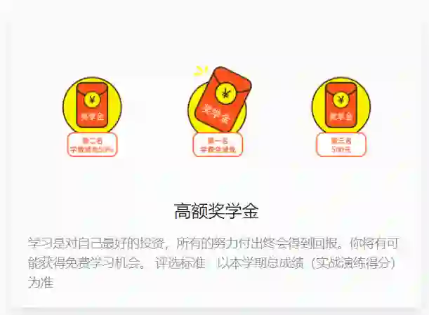 第一名同学学费全返、第二名同学学费返还50%、第三名同学奖励500元!
