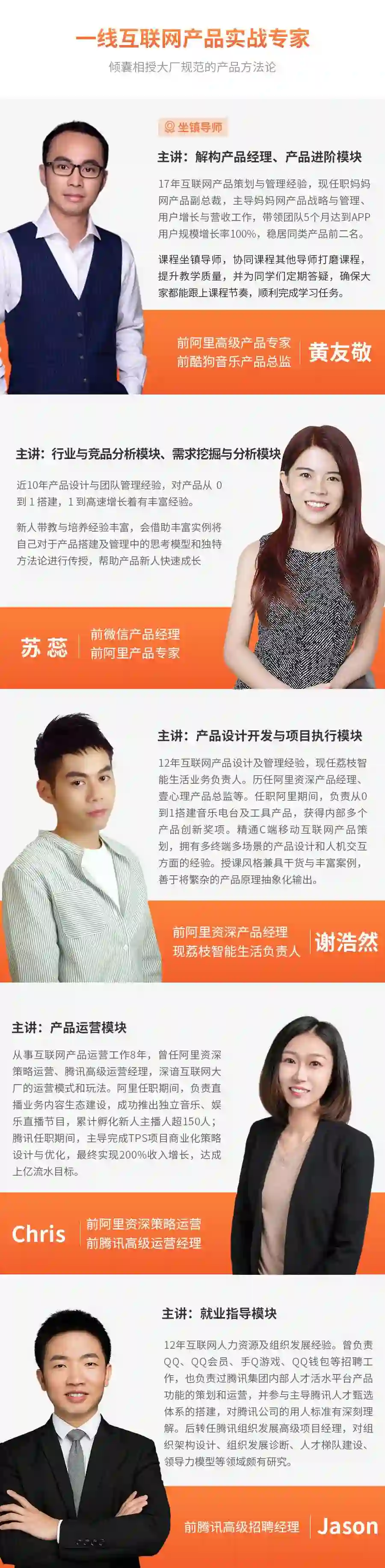 90天产品班的导师都来自BAT等大厂,平均工作年限在8年+以上,目前还在一线大厂工作,并且直播模式更能保证紧跟最新时事热点,还能与老师实时提问,保证学习效果。