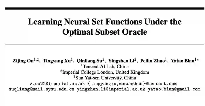 腾讯 AI Lab、帝国理工与中山大学合作发表论文《Learning Neural Set Functions Under the Optimal Subset Oracle》,提出基于最优子集的集合函数学习方法。
