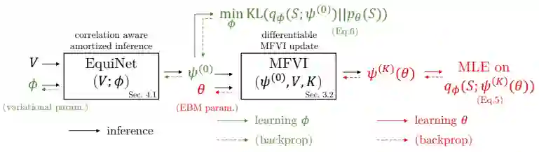 进行建模,从而实现置换不变性。此外,由于能量模型为最大熵分布,其具有最小信息先验假设的特点。为了训练该模型,我们进一步引入了变分分布