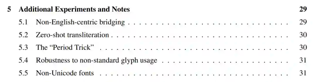 此外,研究者还证明了这些模型对一些而不是所有语言的非标准 Unicode 字形使用都是稳健的(5.4),并探索了几种 non-Unicode 字体(5.5)。