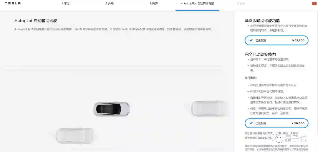最新在中国配置加码,也得83800元人民币(基础辅助驾驶功能27800元+完全自动驾驶能力56000元)。