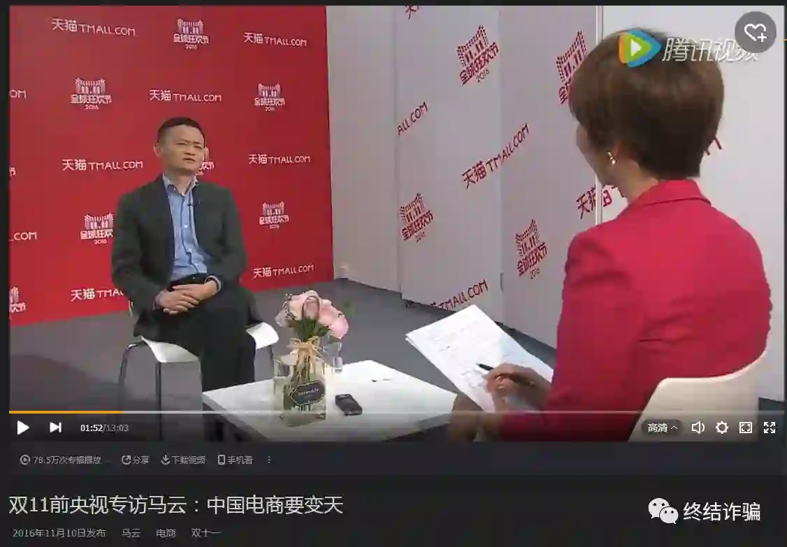 央视记者在2016年11月10日对马云的专访,真实场景如下: