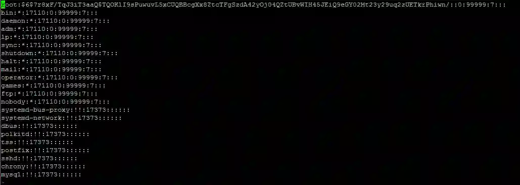 这里面存放着linux系统里所有的用户信息,每当添加完用户后,这里面都会写入相应的数据,相当于windows的用户管理界面,拿第一行数据举例: