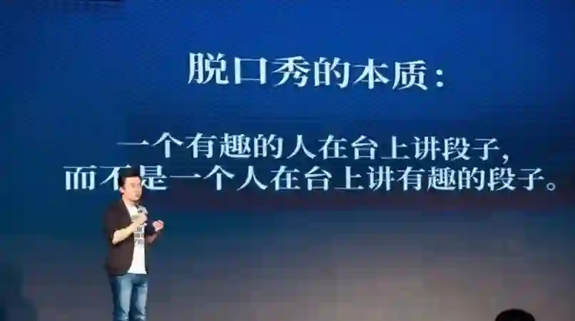 史炎在公开演讲中使用的一张 PPT 也被广为流传,他说,“脱口秀不是看一个人讲有趣的段子,而是看一个有趣的人讲段子。”