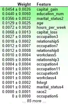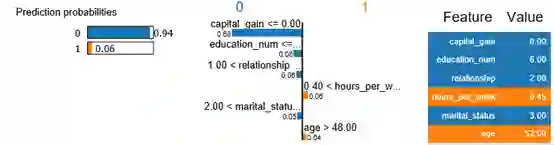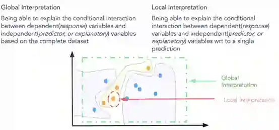 ❷ 局部解释:试图理解 "为什么模型为单个实例做出具体决策?" 和 "为什么模型为一组实例做出具体决策?"。对于本地可解释性,我们不关心模型的固有结构或假设,我们将其视为黑盒子。为了理解单个数据点的预测决策,我们专注于该数据点并查看该点周围的特征空间中的局部子区域,并尝试基于该局部区域理解该点的模型决策。本地数据分布和特征空间可能表现完全不同,并提供更准确的解释而不是全局解释。局部可解释模型 - 不可知解释 ( LIME ) 框架是一种很好的方法,可用于模型不可知的局部解释。我们可以结合使用全局和局部解释来解释一组实例的模型决策。