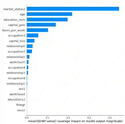 martial_status2 这个特征最重要,且值越大,收入会相对更高,到达一定峰值,会明显下降。