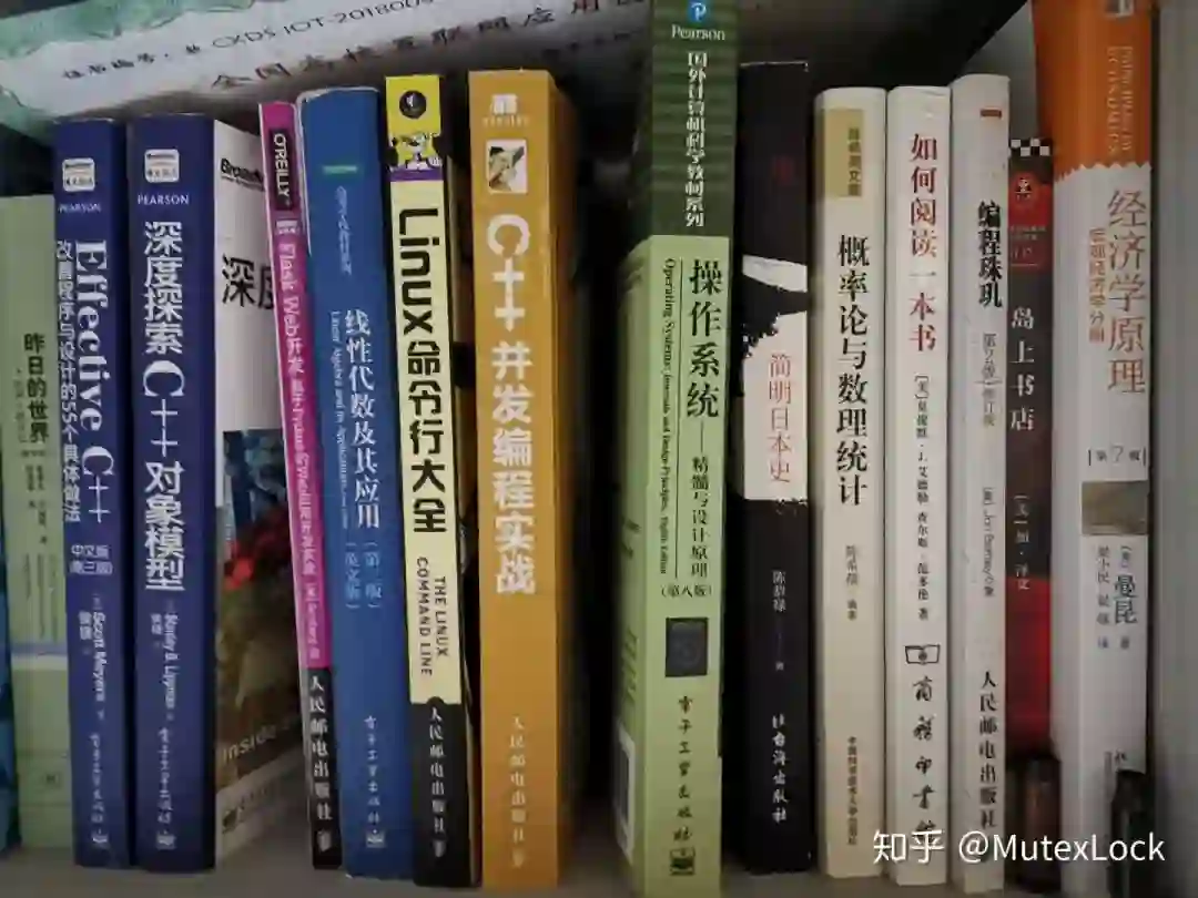 大二暑假和大三上也一直为这个目标奋斗,补上了APUE、部分UNP、深度探索C++对象模型、STL源码剖析、操作系统概念、操作系统真象还原、Linux多线程服务端编程、部分C++ template、部分C++ Concurrency in Action等书籍。
