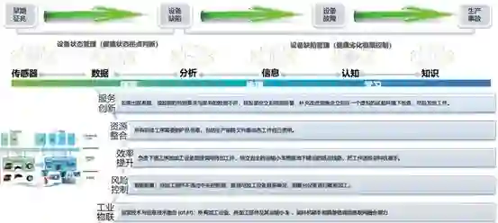 智能功能,是以工业互联网为基础,展现的是相关的风险控制、效率提升、资源整合,一直到服务创新。很多演讲嘉宾也提到了相关的数据要对应到智能制造的整个价值链,从传感器、数据、数据的分析到信息的融合,到最后的认知、知识库反馈重新的建模。最终,都是希望呼应到智能制造中的五大业务驱动力。以OEE设备综合效率为例,IBM希望把生产事故提前到设备故障、到设备缺陷这样一个层级。