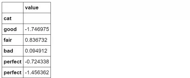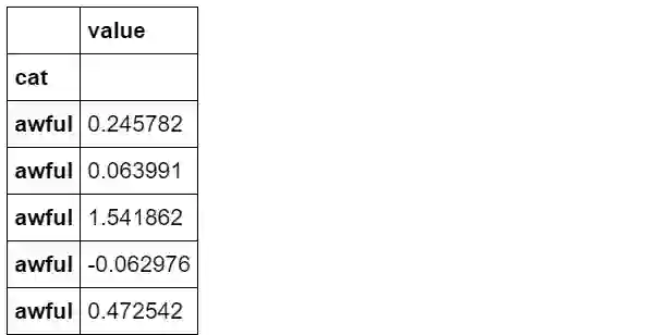 df_sort = pd.DataFrame({'cat':s.values,'value':np.random.randn(50)}).set_index('cat')df_sort.head()