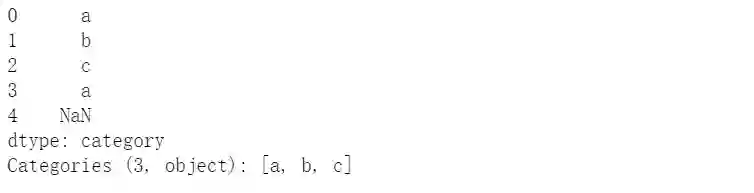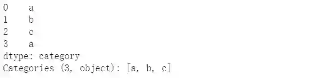 cat = pd.Categorical(["a", "b", "c", "a"], categories=['a','b','c'])pd.Series(cat)