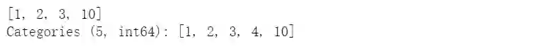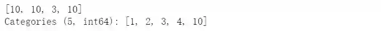 cat = pd.Categorical([1, 2, 3, 10], categories=[1, 2, 3, 4, 10])s = pd.Series(cat, name="cat")cat