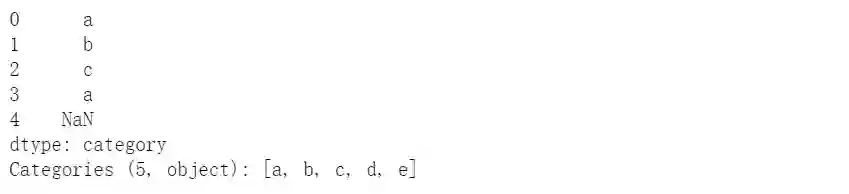 s_new = s.cat.set_categories(['a','d','e'])#s == s_new #报错