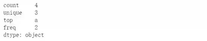 s = pd.Series(pd.Categorical(["a", "b", "c", "a",np.nan], categories=['a','b','c','d']))s.describe()