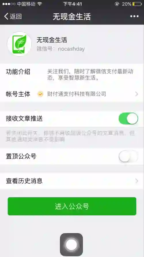 @cnBeta【微信悄然再启“无现金生活” 无现金争议告一段落?】此前引发市场广泛关注的“无现金”争议似乎已告一段落。近日,记者发现,微信已经于9月14日将争论最激烈时改名为“微信支付智慧新生活”的公众号,重新改回了“无现金生活”的本名。为争夺移动支付市场的主导权,支付宝和微信今年来都在大力推进无现金支付方式。支付宝和地方政府合作创建无现金城市,微信也通过补贴等活动大打无现金概念,并将8月8日定为“无现金日”。