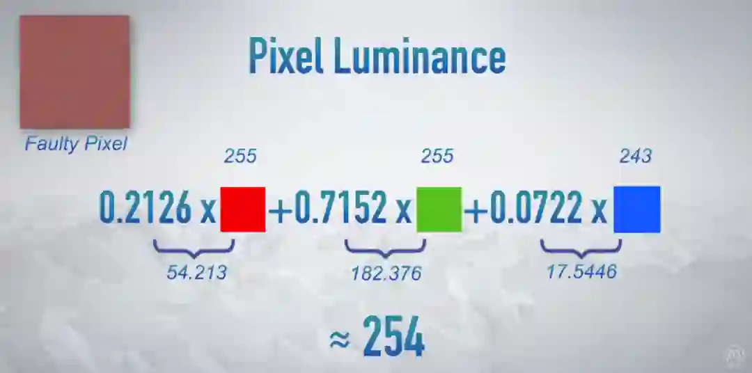 但为了避免最后的数字是浮点数(小数),这个算法好死不死有个取整数步骤,把红绿蓝三个子像素取整到下一个整数,这样加起来最后得到了 256 这个并不存在的像素亮度: