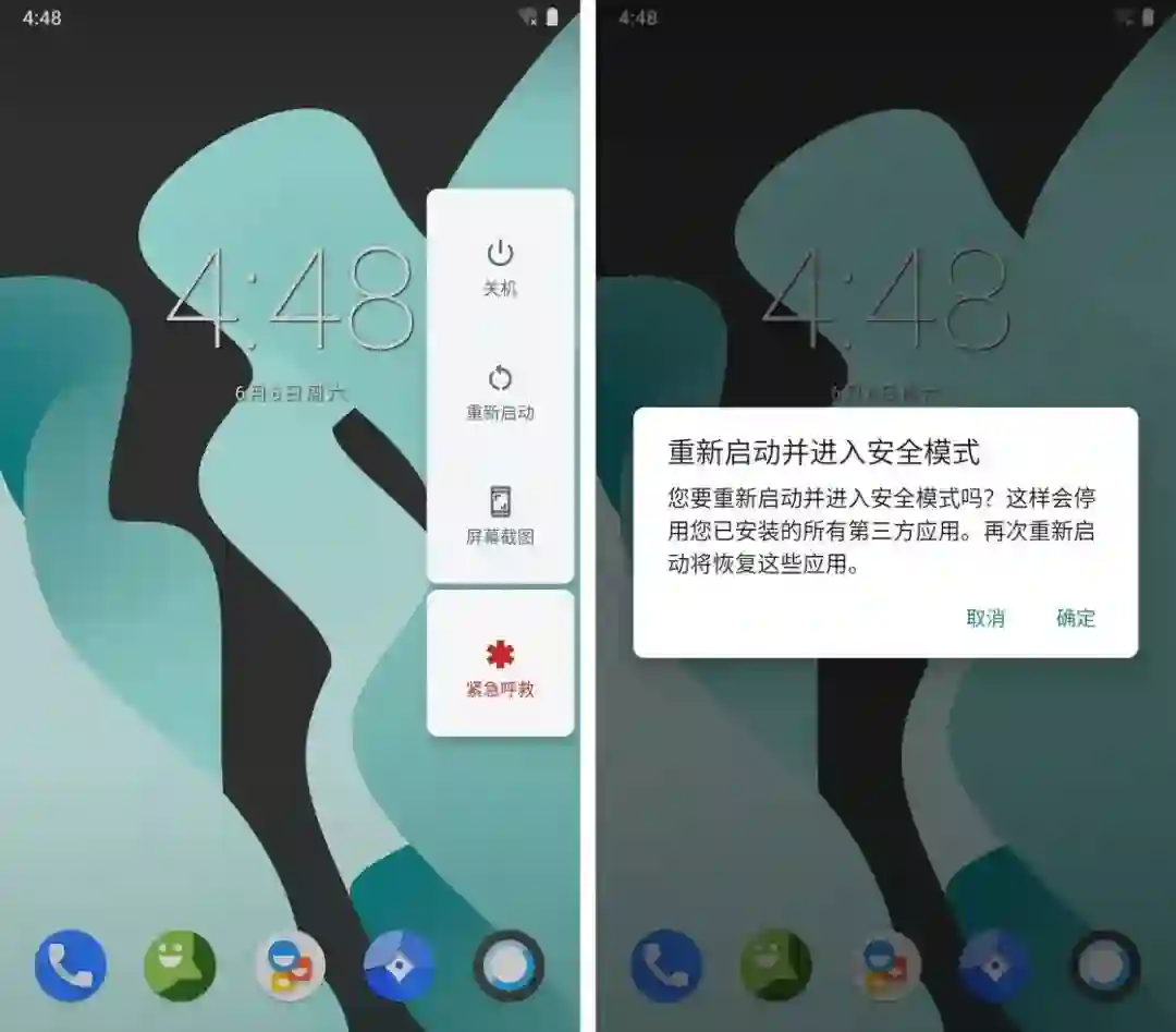 开机后趁屏幕黑屏时双击电源键打开相机,接着长按开机键出现电源菜单,长按关机/重启会弹出安全模式提示,确认后手机会自动重启进入安全模式。