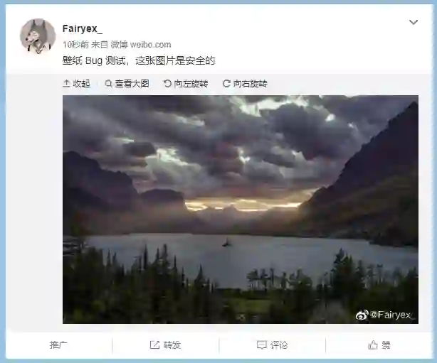 非常神奇的地方在于,把这张原图设为手机壁纸也会导致手机屏幕闪烁重启,这样排除了有人在裁剪后的手机比例图片上做手脚的可能,是图片本身的问题。但在相册里查看图片,把图片截图后再设为壁纸都不会有任何不好的后果。