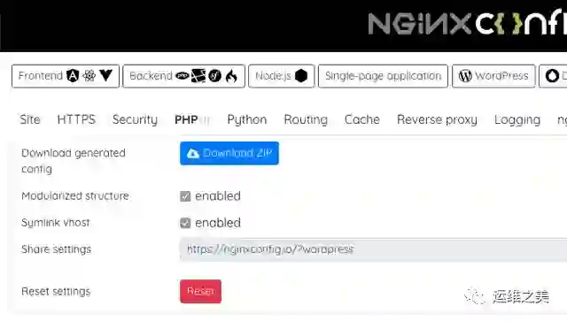 如果你想将辛苦修改好的配件文件保存下来,切换到「Tools」可以找到打包下载为 ZIP 格式的下载工具,比较特别的是 NGINXConfig 内建分享功能,找到底下的分享网址还能将相关设定值透过链接传给其他人查看。