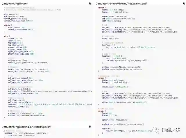 最后,将 .conf 配置文件复制、粘贴回自己 Nginx 服务器对应的路径,重新启动 Nginx 就能够完成套用修改。当然细节部分我就不在文章里多做阐述,本文主要是想推荐 NGINXConfig 这款 Nginx 配置文件生成器,至于要怎么样安装、搭建 Nginx 服务器可参考公众号上其它文章。