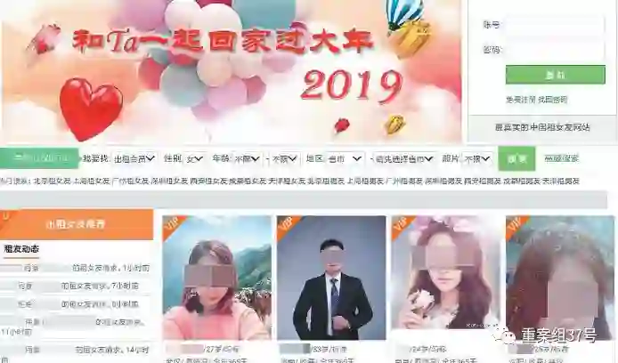 ▲一租友网站首页显示多名待出租男女的照片和信息,临近春节,该网站主打过年租友回家业务。 网页截图