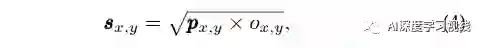 这里我们用平方根来减缓中心度的衰减。中心度的范围为0到1,因此使用二元交叉熵(BCE)损失进行训练。将损失加到损失函数式(2)中,检验时,最终得分Sx,y(用于对NMS中检测进行排序)为预测的中心度Ox,y与对应的分类分数Px,y的乘积的平方根。在形式上,