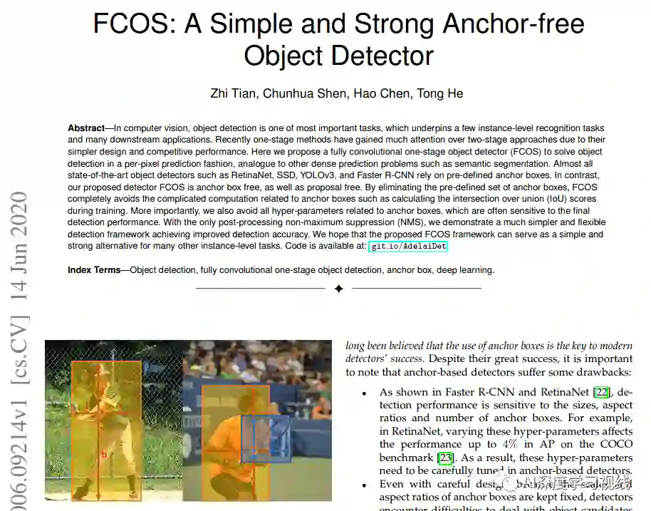 通过消除预先定义的锚定框集,FCOS完全避免了与锚定框相关的复杂计算,例如在训练过程中计算联合交叉点(IoU)分数。