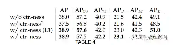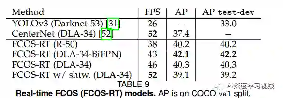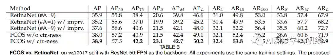 值得注意的是,FCOS的网络输出变量比流行的基于anchor的检测器少9倍,每个位置9个锚盒,这在应用于关键点或实例分割时非常重要。