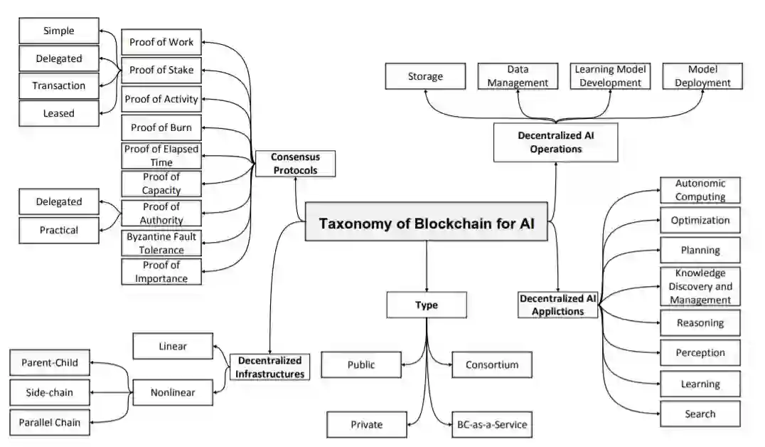 最近,人工智能(AI)和区块链已经成为两种最具趋势和破坏性的技术。区块链技术能够以加密货币自动支付,并以分散的、安全的和可信的方式提供对数据、事务和日志的共享分类账的访问。同样,通过智能契约,区块链能够在没有中介或可信第三方的情况下管理参与者之间的交互。另一方面,人工智能为类似人类的机器提供了智能和决策能力。本文对区块链在人工智能中的应用进行了详细的综述。我们回顾了相关文献,列出并总结了针对AI领域的区块链应用、平台和协议。我们还确定并讨论了将区块链技术用于人工智能的开放研究挑战。