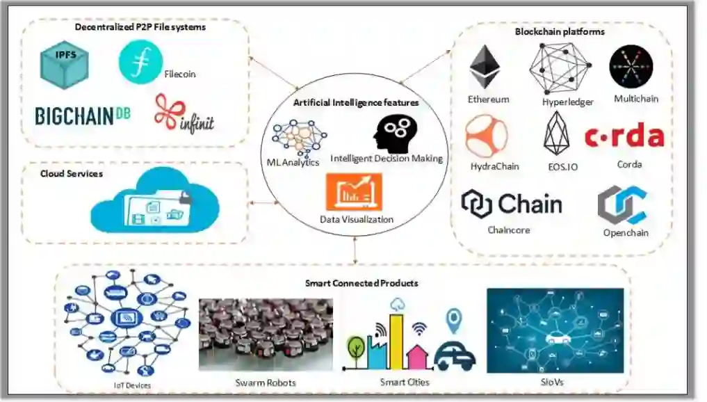 与人工智能紧密相关的技术,比如P2P文件系统、区块链平台、智能物联网等。