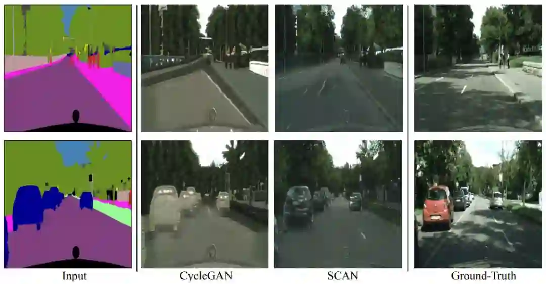 最近关于无监督的图像到图像转换研究取得了较为显著的进展,其主要思想是通过训练一对具有循环一致性损失(cycle-consistent loss)的生成对抗网络(Generative Adversarial Networks)。然而,当图像分辨率高或者两个图像域具有显著差异时(例如 Cityscapes 数据集中图像语义分割与城市景观照片之间的转换),这种无监督方法可能产生较差的结果。