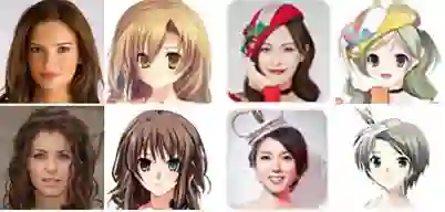 此外,利用 SCAN 还可以更好地完成涉及物体形状改变的图像到图像转换,如真人头像到动漫头像的转换。图 4 展示了真人头像转动漫头像的直观结果,可以看到眼睛和嘴巴的大小和形状都发生了改变,不再是简单的逐像素变换。