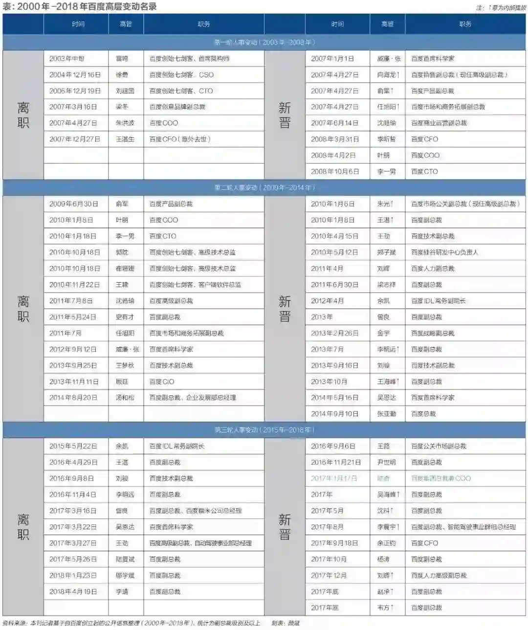 2017 年 1 月,陆奇入职后,百度多项业务被重组调整、并经历吴恩达和王劲等多名高管离职。