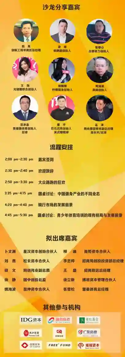 软件APP,青少年体育培训以及健身行业是目前体育行业中三个蒸蒸日上的领域。在本期活动中,创新工场邀请到了来自这三个领域的优秀创业者,讲述自己在行业内的成长经验。