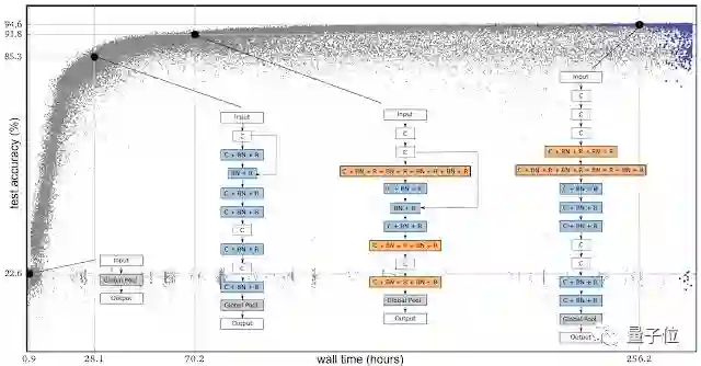 下图出自谷歌大脑的第一篇论文,每一个点代表用CIFAR-10训练后得到的神经网络。