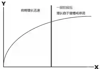 我们先来看看个人成长或者说资产增长的三种路径,第一种是对数成长路径。他们的收入增长曲线如下,开始增长会比较快,但是也很快会进入瓶颈期,虽然后面随着经验的增长他们的收入也会缓慢增长,但是顶部是可预知的,是一条基本平缓的曲线。