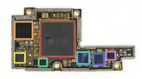 红色:苹果 APL1W72 A11 仿生 SoC 覆盖 SK 海力士 H9HKNNNDBMAUUR 3GB LPDDR4 RAM