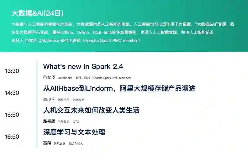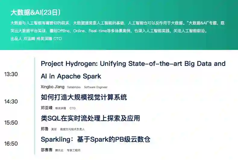 邓亚峰老师所在的专场是大数据&AI专场,精彩议题如下: