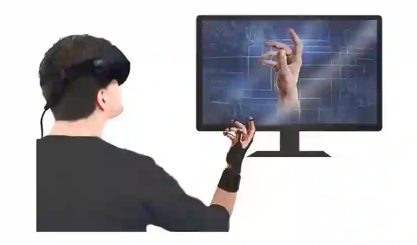 用户可戴手套与VR互动。