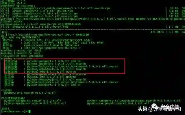 因为没有pip,所以我们需要安装pip,我们利用yum安装