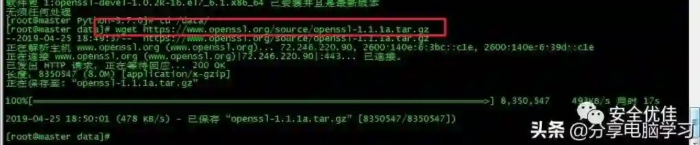 penssl-devel-1.0.2k-16.el7_6.1.x86_64,而python3.7需要的openssl的版本为1.0.2或者1.1.x,需要对openssl进行升级,并重新编译python3.7.0。yum 安装的openssl 版本都比较低。