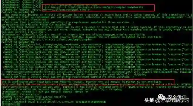 接下来进行测试matplotlib 如果不显示错误的话,就说明你已经成功安装了matplotlib