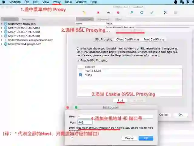 完成上面操作,最后再设置下SSL Proxying ,就可以利用 Charles 抓包 https 请求了。