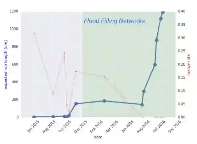 Google 与 Max Plank 神经生物学研究所在《Nature Methods》中发表的“ 用泛洪填充网络高效自动重建神经元 (High-Precision Automated Reconstruction of Neurons with Flood-Filling Networks)”一文 ,则展示了一种新型的递归神经网络,如何提升连接组数据自动分析的准确性,这比先前深度学习技术是数量级的提升。